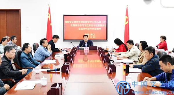 海南省文联召开省文联作协党组理论学习中心组(扩大)会议,专题传达学习习近平总书记在中国文联十一大、中国作协十大开幕式上的重要讲话和全国文代会精神。会议要求,全省文联系统和文艺工作者要遵照习近平总书记的殷切希望,心系民族复兴伟业,热忱描绘新时代新征程的恢宏气象;要坚守人民立场,书写生生不息的人民史诗;要坚持守正创新,用跟上时代的精品力作开拓文艺新境界;要用情用力讲好中国故事,向世界展现可信、可爱、可敬的中国形象;要坚持弘扬正道,在追求德艺双馨中成就人生价值。