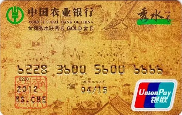 农业银行2011年9月发行金穗秀水联名信用卡,卡面设计以《清明上河图》(局部)为底纹,彰显时尚化、民族化、生活化的风格特点。