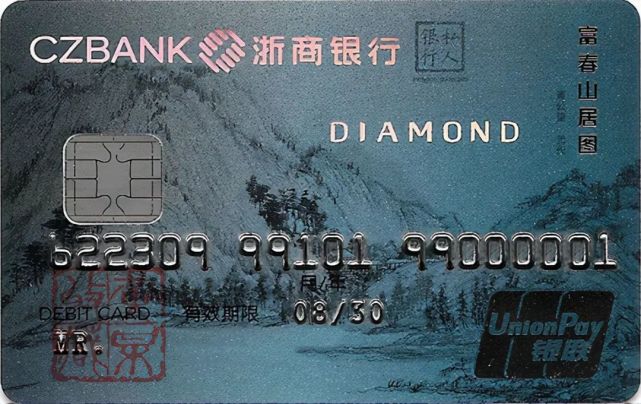 浙商银行将《富春山居图》(局部)设计为该行私人银行卡面,加印“私人银行”印鉴,更凸显出该卡的尊贵等级和艺术气息。